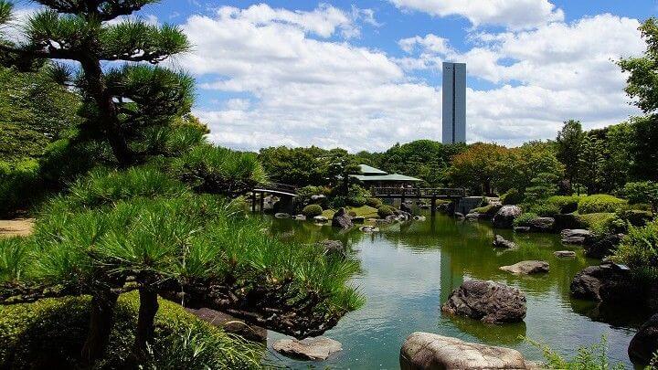구경거리 : 일본정원, 국제정원, 승마원과 구기장, 온수 풀 같은 문화시설오사카 시내 단풍 명소 다이센 공원 일본정원