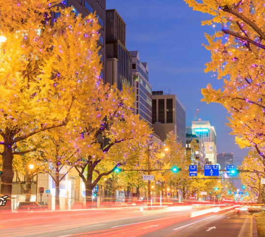 출처 https://osaka-chushin.jp/nigiwaipanel/ko/semba-ko/a0s08-ko/, https://metronine.osaka/ko/article_tour/20201127-now-osaka-sightseeing-ginkgo/ 개방시간, 입장료 : 24시간, 무료